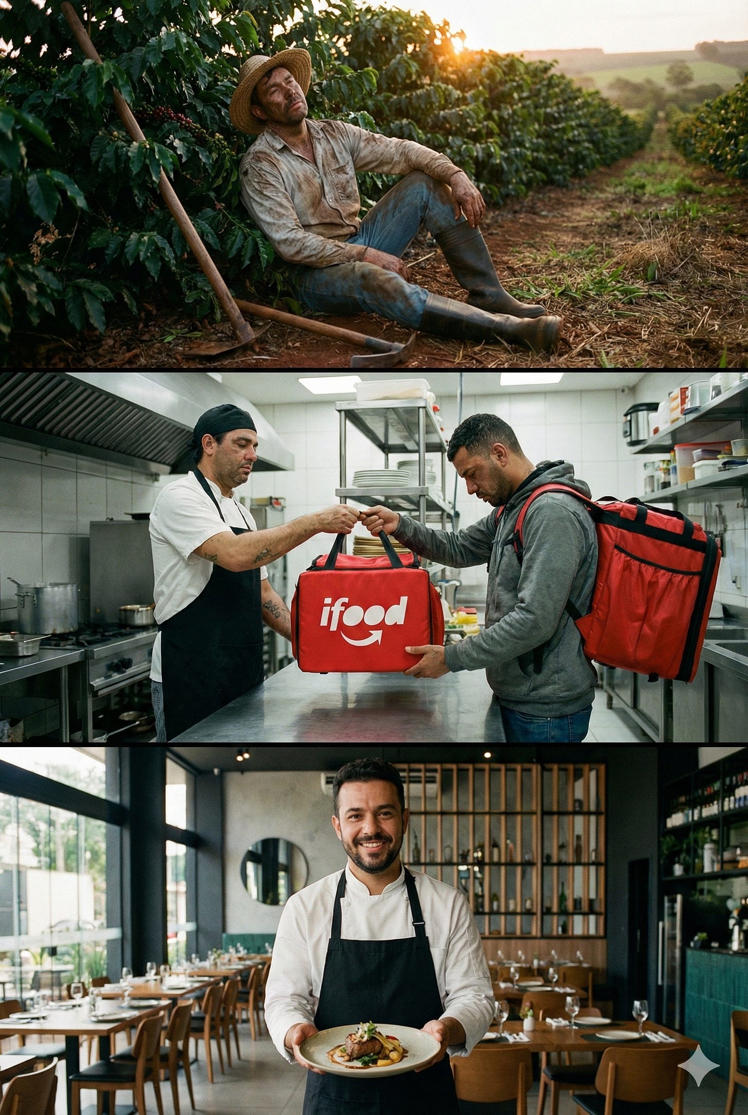 Por fim, temos o Chef que construiu sua reputação. As pessoas não vão lá porque apareceu um cupom no aplicativo; elas vão pela experiência dele. Ele tem o cadastro dos clientes, ele define o menu e, o mais importante: ele vende diretamente ao consumidor, capturando toda a cadeia de valor.